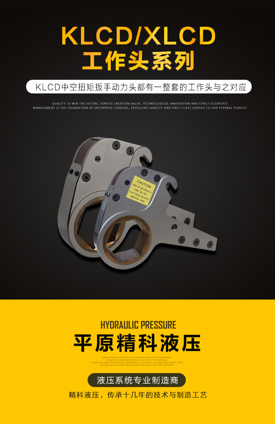 - 每个型号的KLCD中空扭矩扳手动力头都有一整套的工作头与之对应,此表格涵盖该型号的动力头所能提供所有尺寸的螺栓.在选择工作头时,注意螺栓与障碍物……